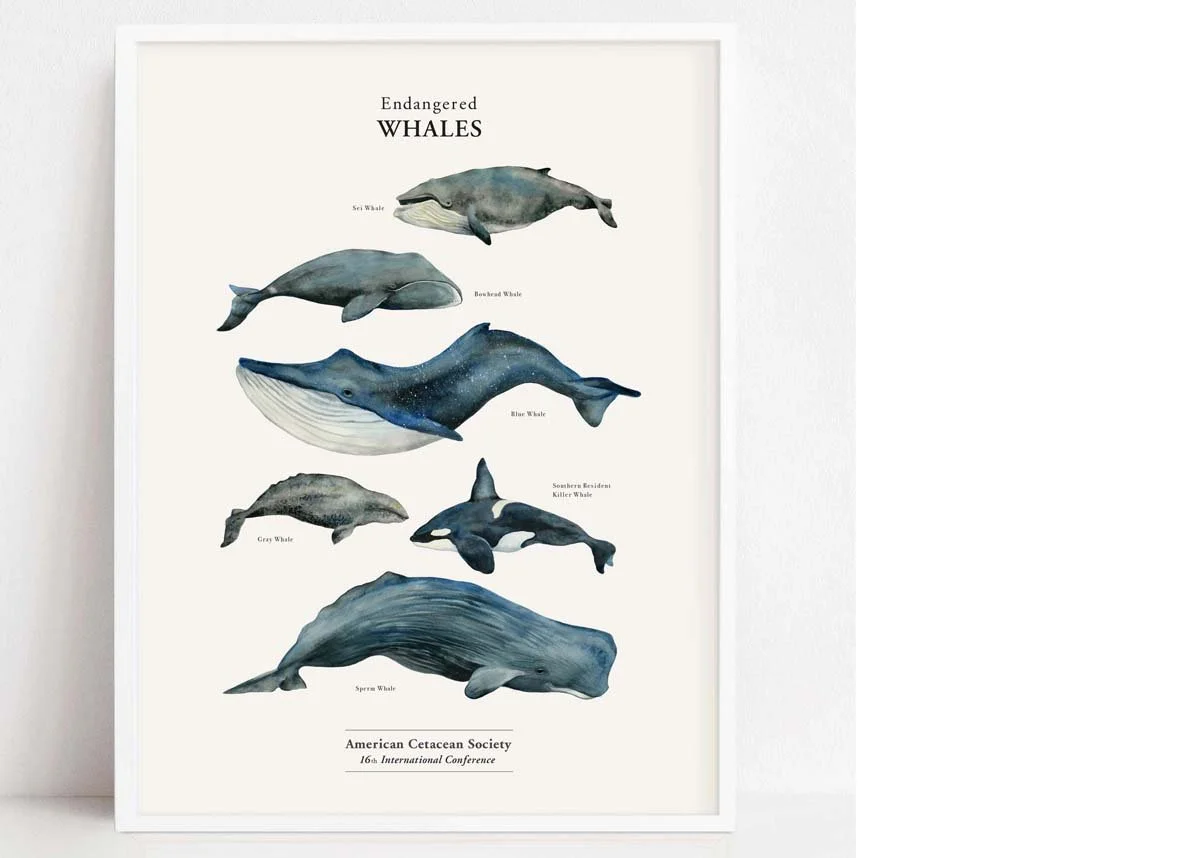 “Endangered Whales”, Art contribution for American Cetacean Society / 16th International Conference, Watercolor